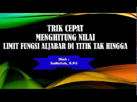 Limit tak hingga dengan mengalikan dengan bentuk sekawan limittakhinga carapraktis. Nilai pangkat tertinggi dari pembilang adalah 3, sedangkan nilai pangkat tertinggi dari penyebut adalah 2 (m > n). Keempat mengenai nilai limit tak hingga yang berbentuk polinomial dan yang akan di bahas ialah bentuk polinomial dengan variabel x dengan pangkat yang tertinggi. Limit tak hingga trigonometri polinomial pecahan eksonensial. Selanjutnya, pada kesempatan kali ini akan dipelajari mengenai limit tak hingga fungsi satu peubah.